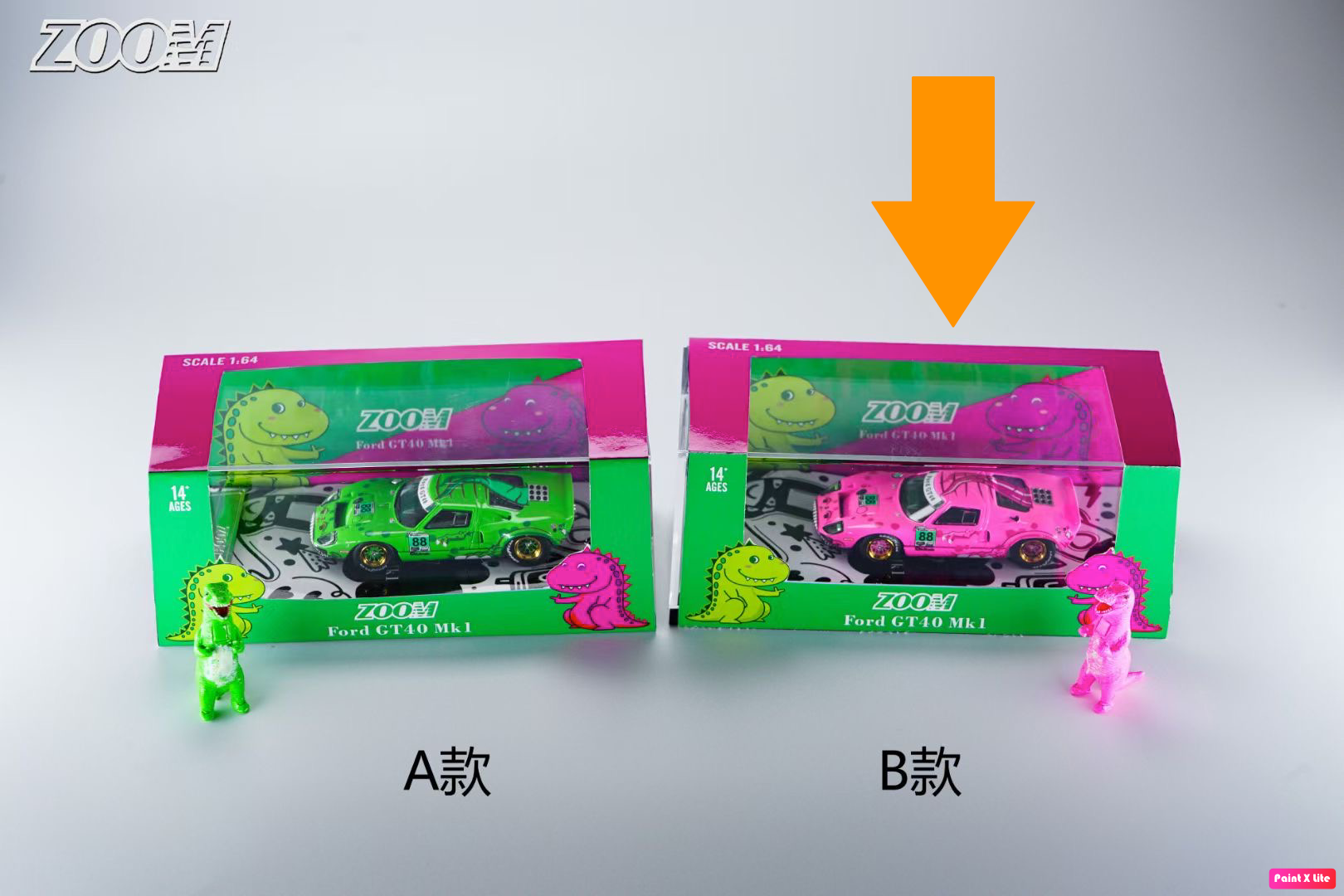Zoom 1:64 Ford GT40 MK1 (P/1075) Tyrannosaurus Roxy Pink with Pink Dinosaur Figure